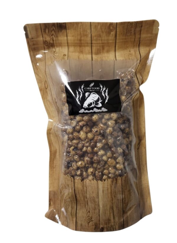 Wysokiej jakości orzech tygrysi, naturalny i gotowy do użycia prosto z opakowania. Starannie przygotowany, pasteryzowany – idealny do nęcenia i jako przynęta haczykowa. Często wybierany przez wędkarzy łowiących selektywnie duże karpie i amury.